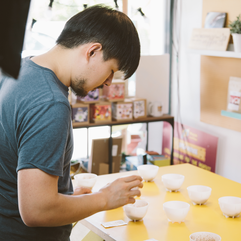 "It's super easy to do, and I would like for people to try it at home. Again, it involves just water and coffee, fundamentally. A higher order cupping would require at least two different coffees, so that you may make comparisons between each, critically analyse them both, and train your taste buds! It could be as contrasting as a Brazilian coffee against an Ethiopian coffee, or it could be a Brazilian coffee against another Brazilian one from a different farm. The key is to identify differences and think about how their background affects their flavour profiles, and deciding which you prefer. I really encourage this exercise because it helps to increase consumers' knowledge about the coffee they're getting. I'd also like to add that there's no right or wrong when it comes to cupping, and no one is going to be an overnight, 100% expert at it – it's simply an exercise that should at best, help one appreciate coffee for what it is. Be your own judge!"