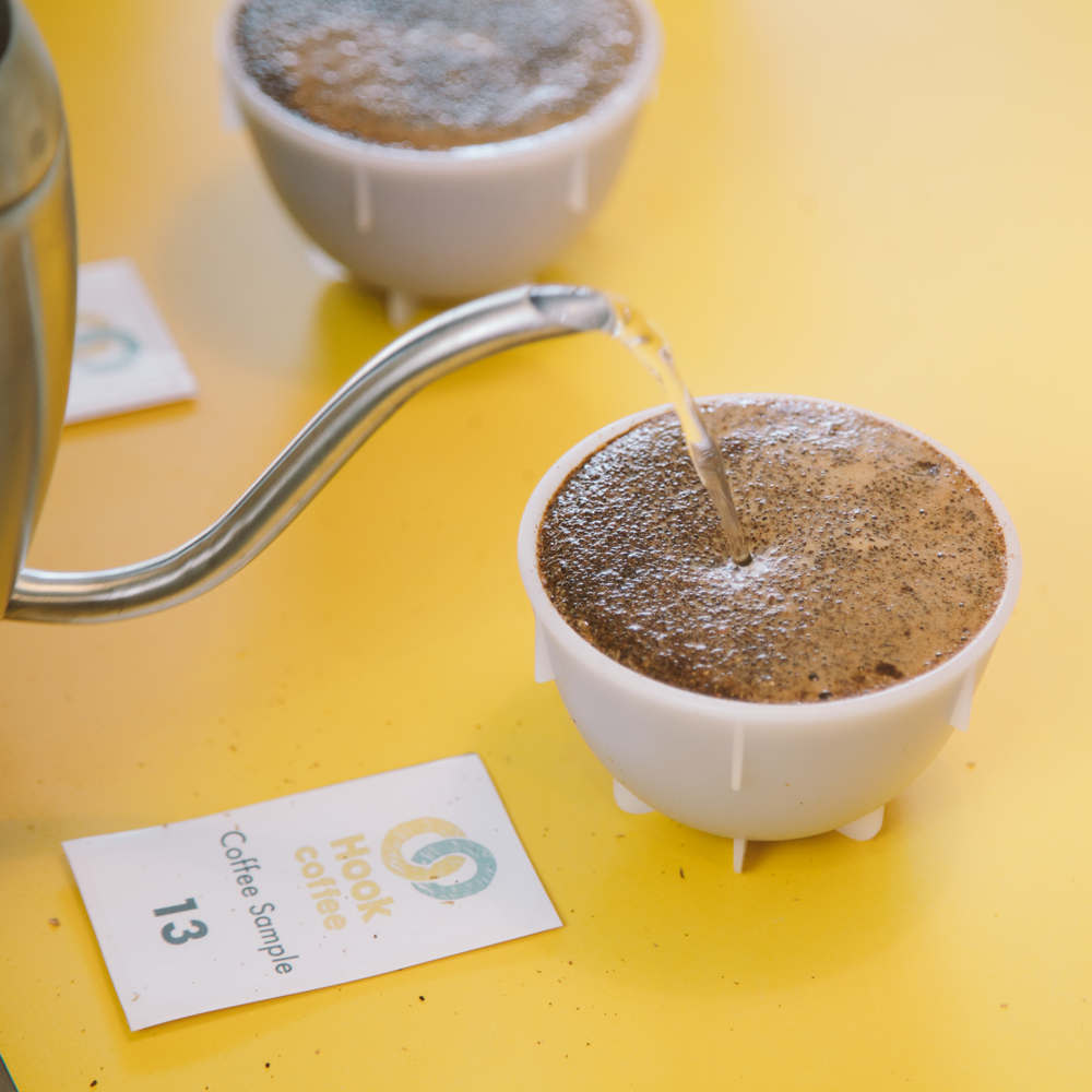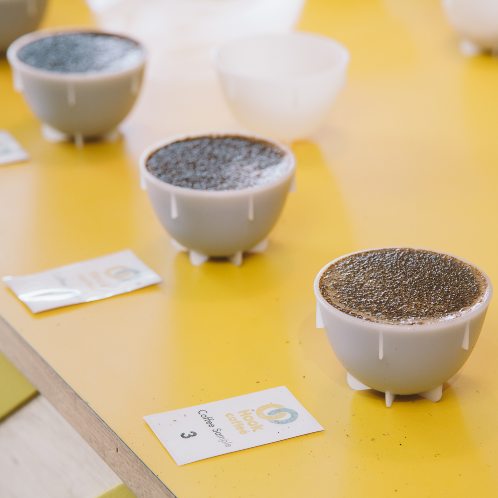Every week, I would notice Hook's Head of Coffee, Kit, get busy setting up the showroom counter. Being the curious person that I am, I'd scoot over for a look. Seeing sampling cups and labels lined up on the countertop, I'd ask the same question every time: "cupping again?"