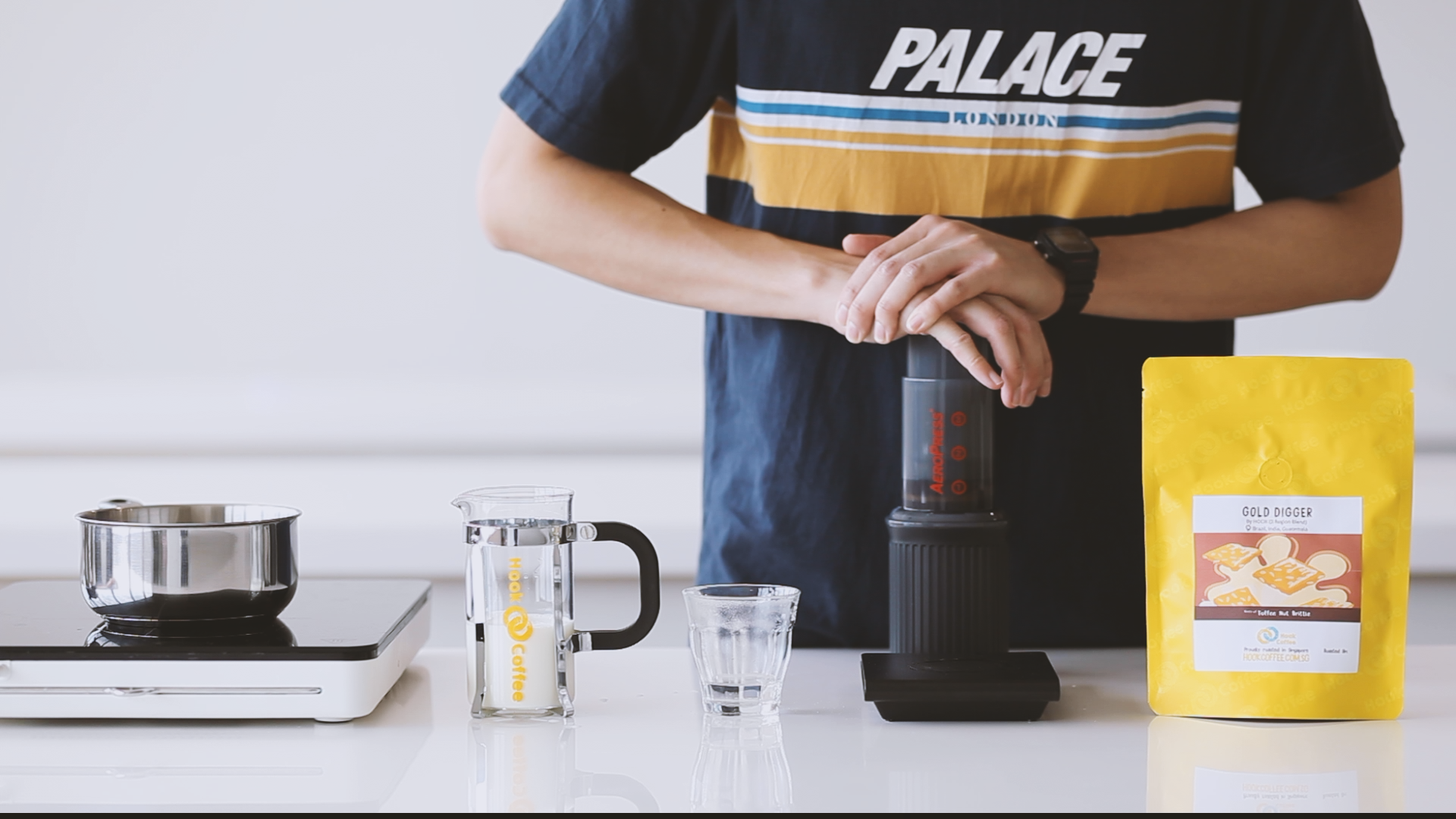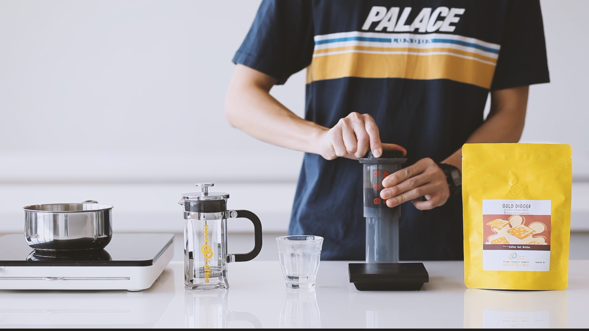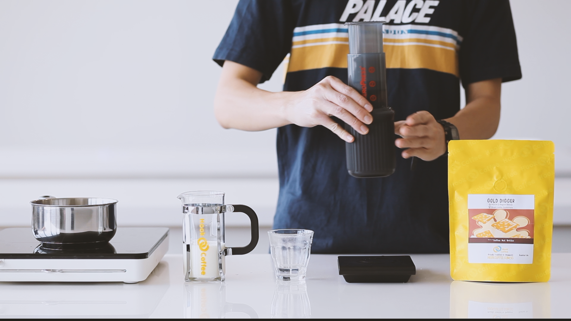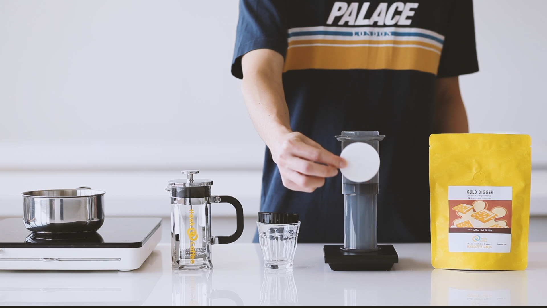 1. Place the Aeropress filter paper in the filter cap, and rinse paper with water once it comes right off the boil. This removes the smell and taste of paper.
