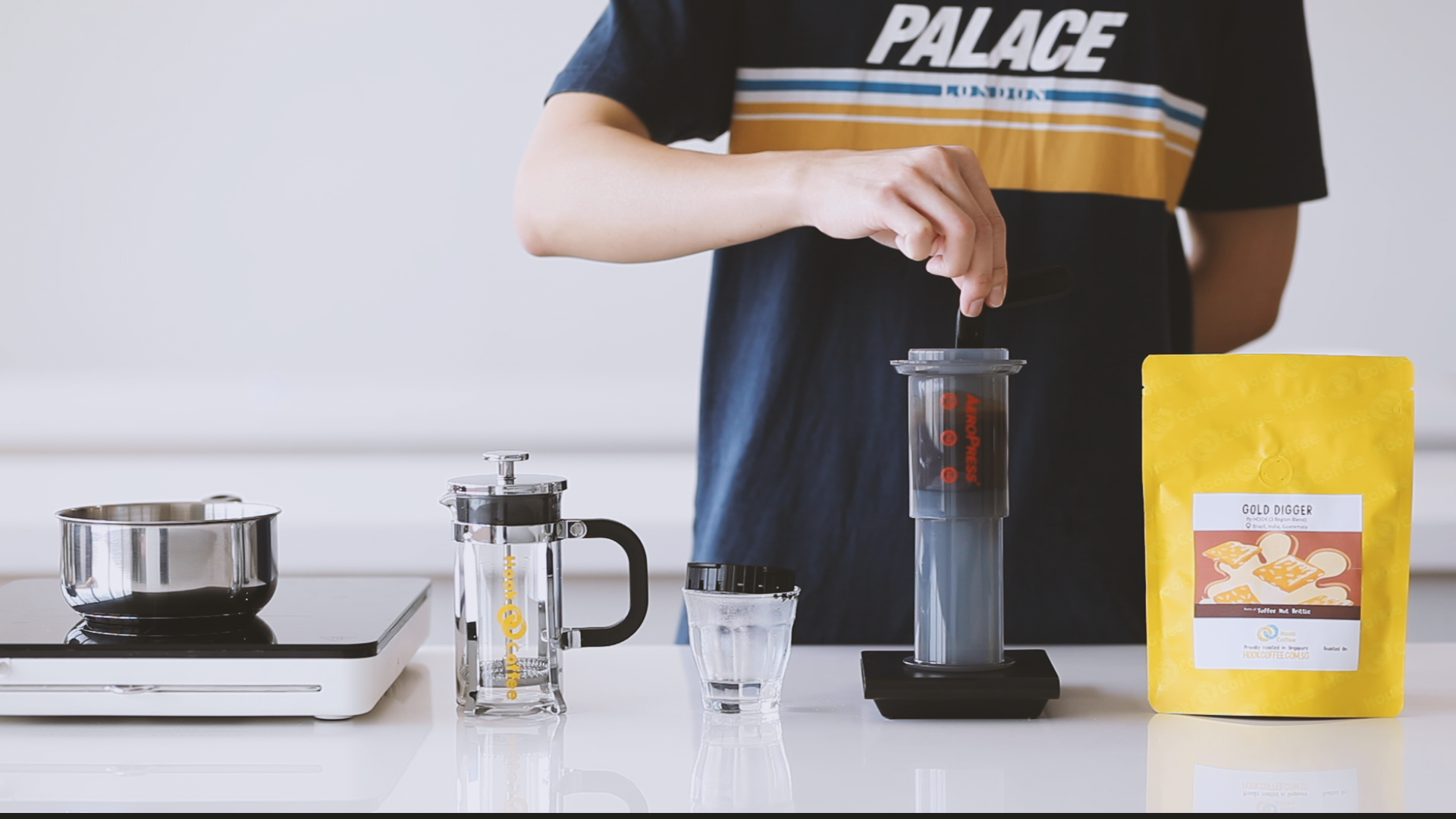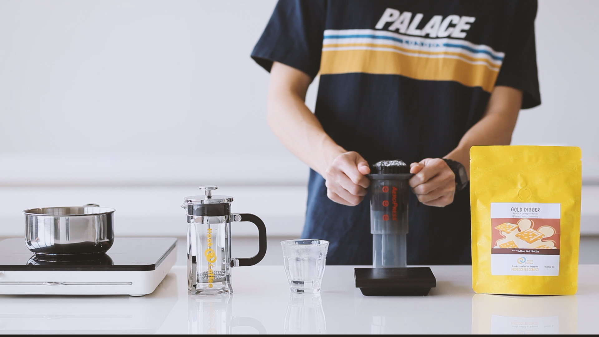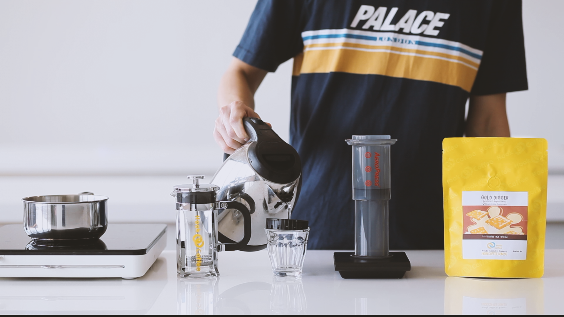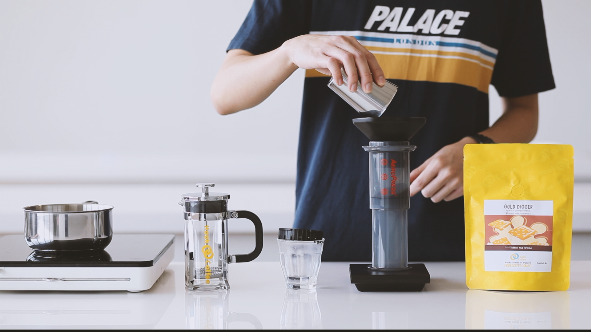 1. Place the Aeropress filter paper in the filter cap, and rinse paper with water once it comes right off the boil. This removes the smell and taste of paper.