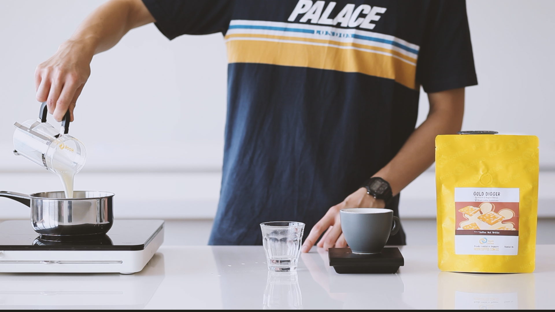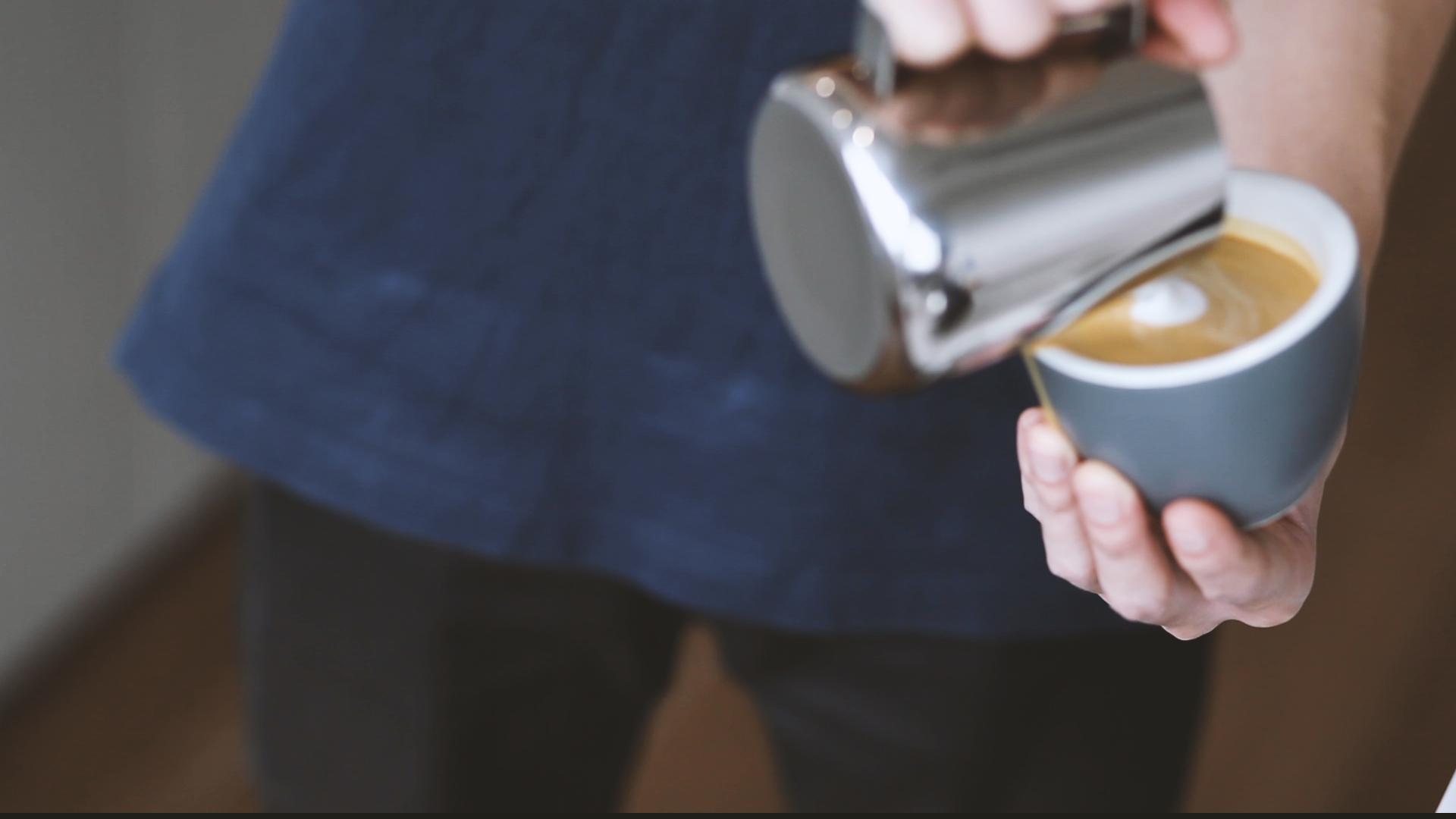 4. Grab a pre-heated milk pitcher. After transferring the frothed milk to the pitcher for some latte art, be sure to polish the milk! This involves tapping the base of the pitcher on a hard surface, popping any visible and big foam bubbles, and gently swirling the milk to incorporate it into homogenous, creamy milk ready for pouring. For a more in-depth tutorial, check out this video we made!